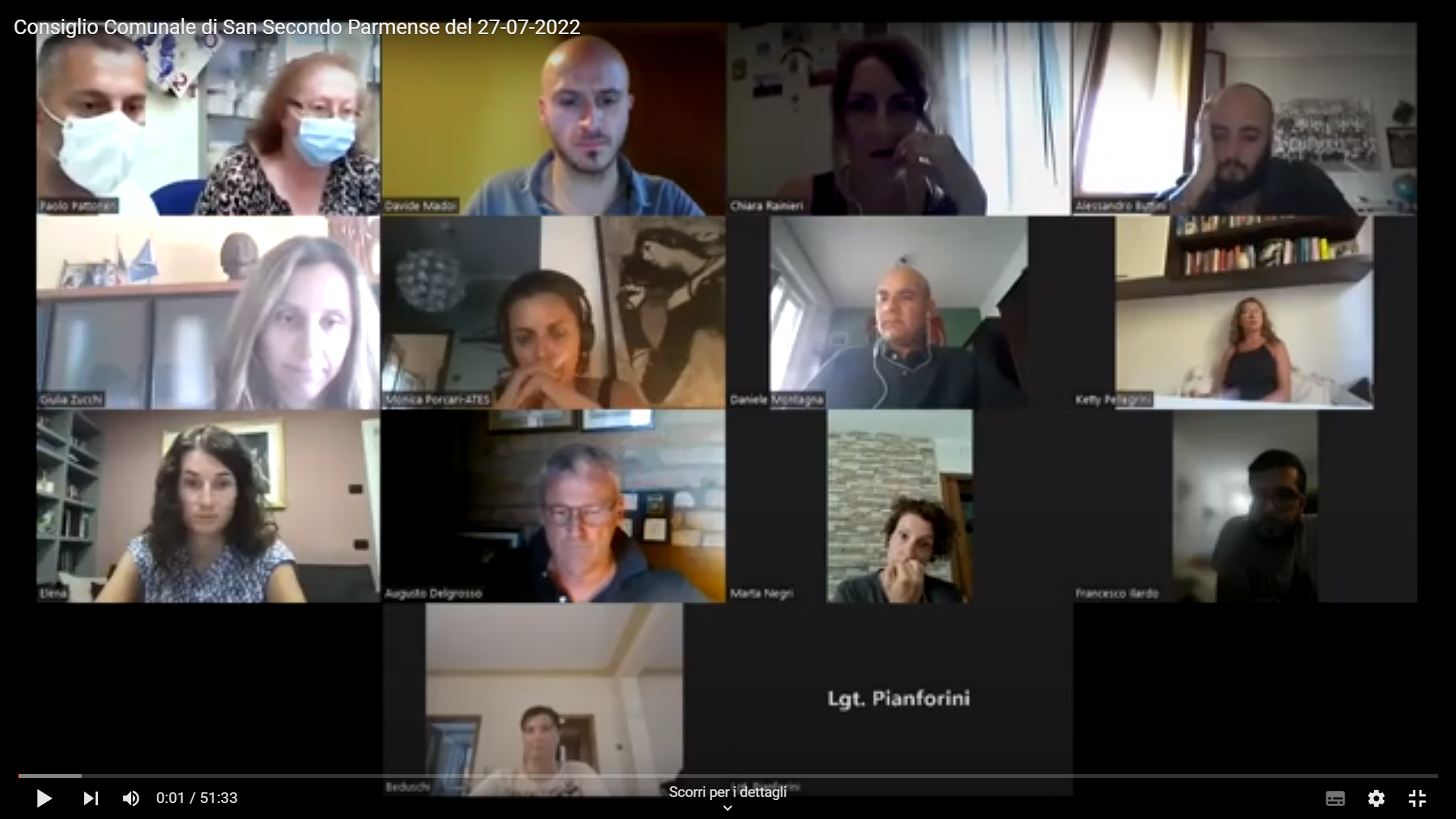 La seduta del Consiglio Comunale di San Secondo Parmense del 27 luglio 2022 si è tenuta in videoconferenza ai sensi del Regolamento sullo svolgimento in modalità telematica approvato dal C.C. con atto n. 22 del 29 luglio 2021.